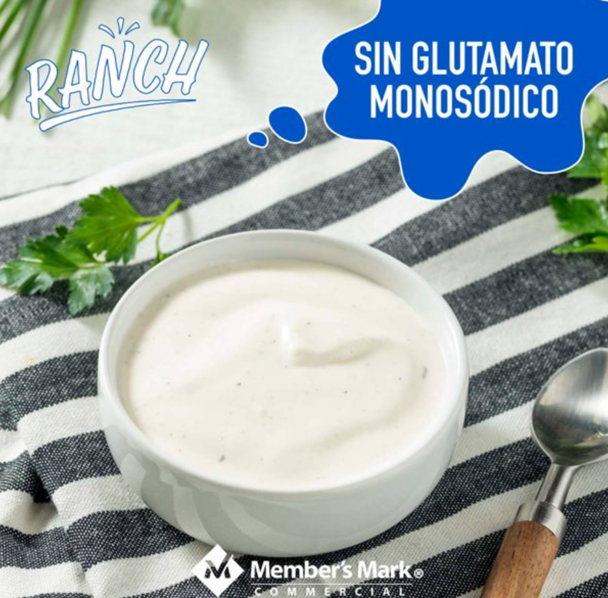 Aderezo Ranch Member’s Mark con fórmula sin glutamato monosódico; el aderezo ranch es ideal para darle sabor a diversos platillos. No dejes pasar la oportunidad de darle un plus a tus recetas de cocina que tus comensales queden satisfechos.