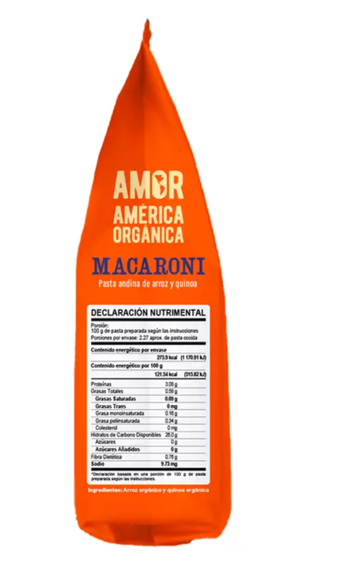 Los Macaronis de Libres de Gluten son elaborados únicamente con 2 ingredientes (arroz y quinoa 100% organicos), ademas de ser altamente nutritivos, son libres de OMGs (Organismos Modificados Genéticamente), sin ningún aditivo ni ingrediente artificial y totalmente libre de alérgenos. Contamos con certificaciones internacionales, Kosher, GF y Vegano. Finalmente has encontrado una pasta Gluten Free "AL DENTE" de rico sabor y de perfecta textura. Disfrutarás una experiencia gastronómica que podrás compartir en familia y con amigos de manera versátil con cualquier salsa, como plato principal o guarnición. Con toda seguridad podrás consentir a los más pequeños de la casa con un alimento que aporta proteínas, carbohidratos y aminoácidos esenciales. Siguiendo las simples instrucciones y sugerencias para su cocción, en tan solo 10-12 minutos disfrutarás del rico placer saludable.