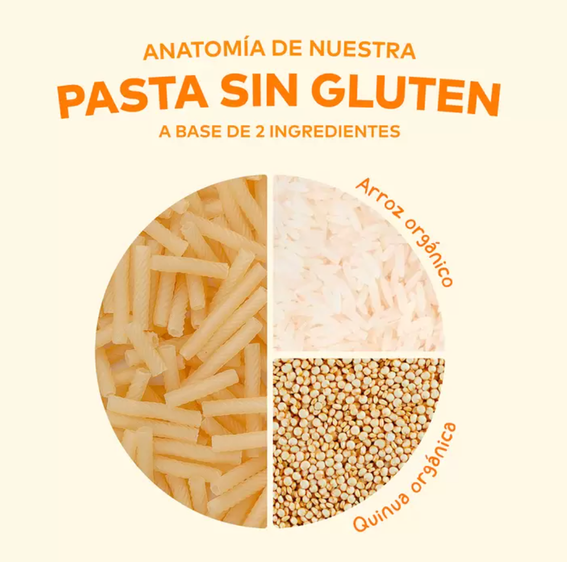 Los Macaronis de Libres de Gluten son elaborados únicamente con 2 ingredientes (arroz y quinoa 100% organicos), ademas de ser altamente nutritivos, son libres de OMGs (Organismos Modificados Genéticamente), sin ningún aditivo ni ingrediente artificial y totalmente libre de alérgenos. Contamos con certificaciones internacionales, Kosher, GF y Vegano. Finalmente has encontrado una pasta Gluten Free "AL DENTE" de rico sabor y de perfecta textura. Disfrutarás una experiencia gastronómica que podrás compartir en familia y con amigos de manera versátil con cualquier salsa, como plato principal o guarnición. Con toda seguridad podrás consentir a los más pequeños de la casa con un alimento que aporta proteínas, carbohidratos y aminoácidos esenciales. Siguiendo las simples instrucciones y sugerencias para su cocción, en tan solo 10-12 minutos disfrutarás del rico placer saludable.