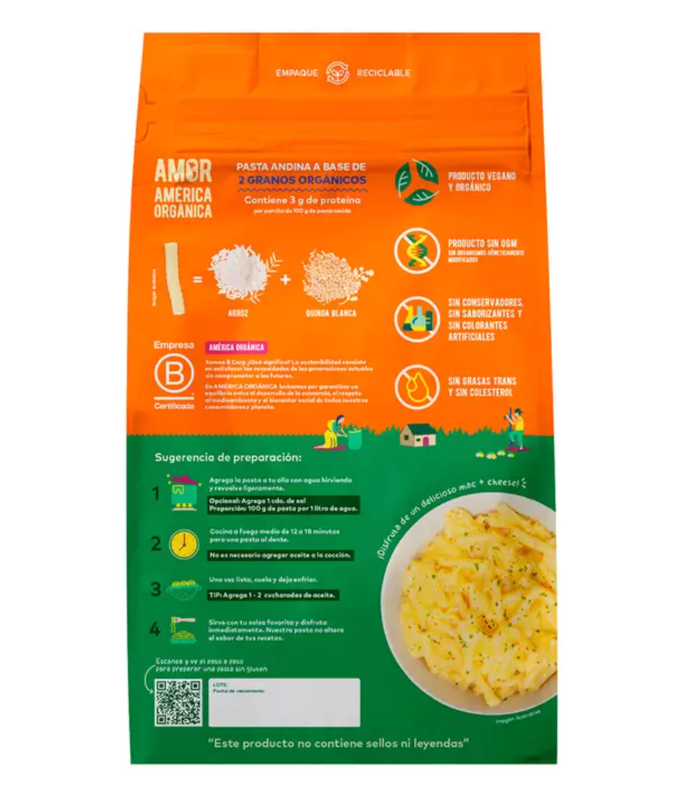 América Orgánica Pasta de Arroz y Quinoa Libre de Gluten de 907 grs - KOZ