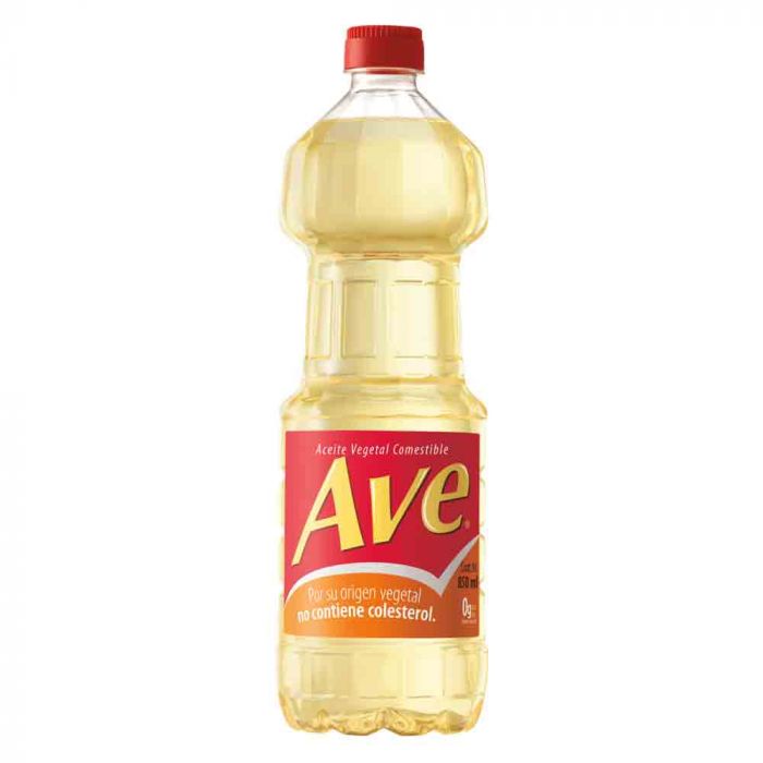 Caja de aceite vegetal de la marca Ave con 12 botellas de 800 ml cada una.