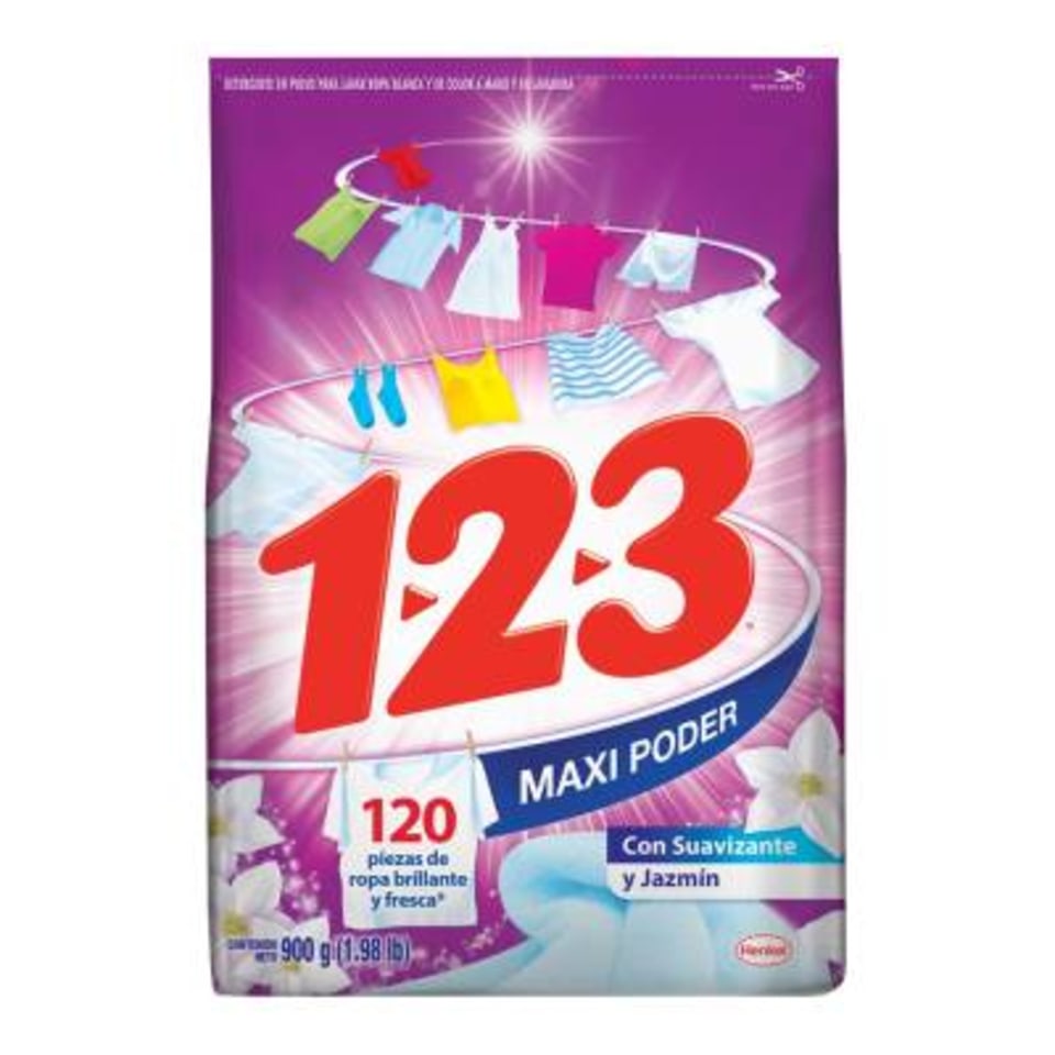 Detergente en polvo 123 con Suavizante diseñado para limpiar las manchas más difíciles. Además de dejar una sensación de frescura y olor tan agradable.