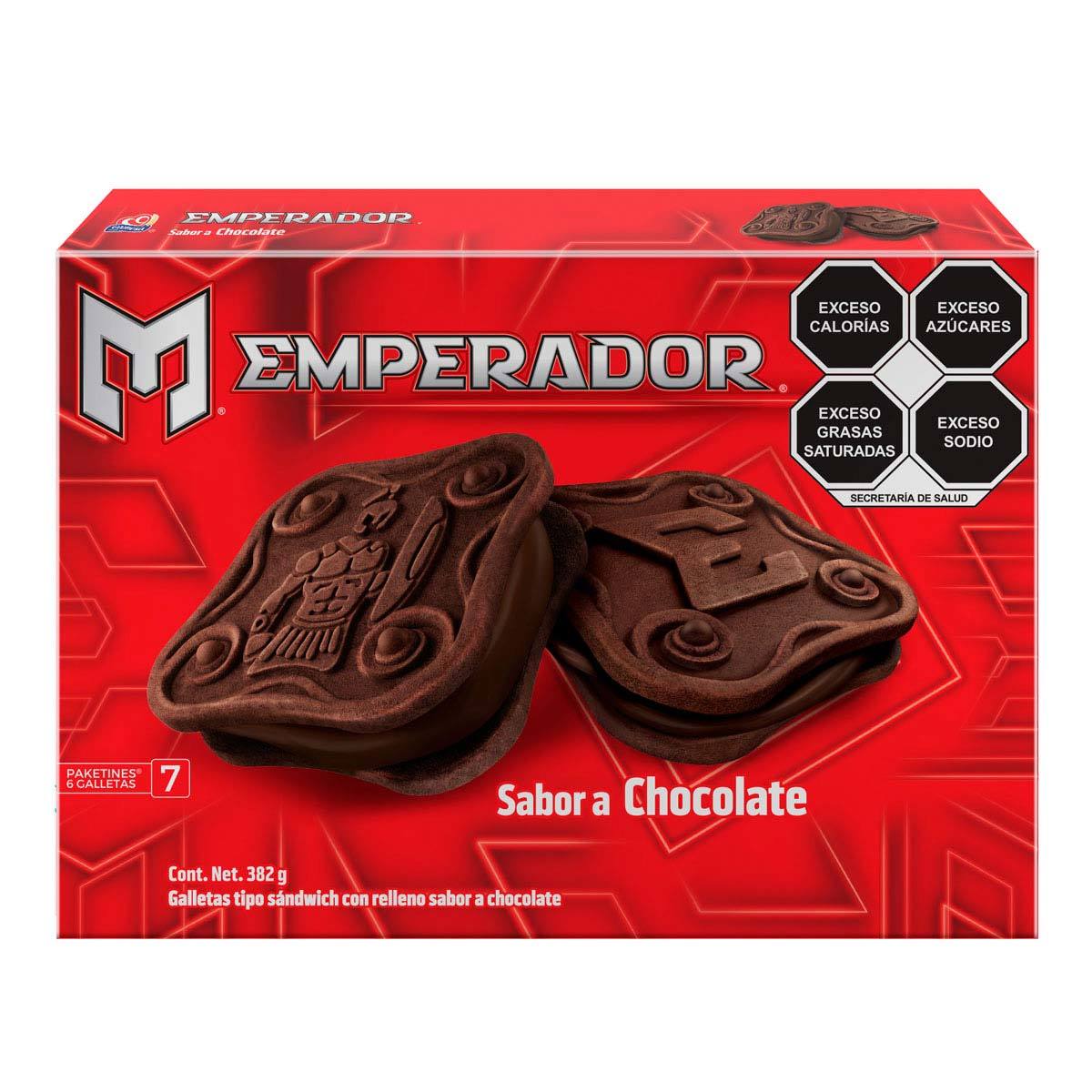 Galletas Emperador® con forma tipo sándwich y relleno sabor a chocolate cremoso. Paquete de 382 gr.
