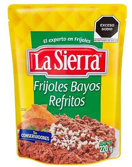 Caja de 24 bolsas de frijol bayo refrito de La Sierra en 24 bolsas de 430 grs. cada una de Sabormex.