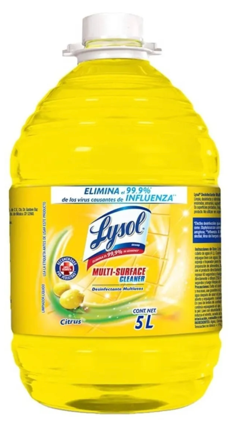 Lysol Desinfectante Multiusos puede ayudarle a proteger a su familia eliminando el 99.9% de gérmenes que pueden encontrarse en las superficies de su hogar. Efectiva desinfección que elimina aún diluido gérmenes como: Staphylococcus aureus, Escherichia coli, Candida albicans, Pseudomonas aeruginosa, Influenza A (H1N1), Rotavirus cepa WA, Virus respiratorio sincitial, Virus del Herpes simple tipo I. Use este producto y obtenga como resultado una limpieza profunda con un fresco aroma a cítricos.