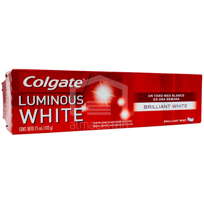 Pasta Dental Colgate Luminous White, contiene peróxido de hidrógeno, el mismo ingrediente activo que es utilizado para tratamientos de blanqueamiento.