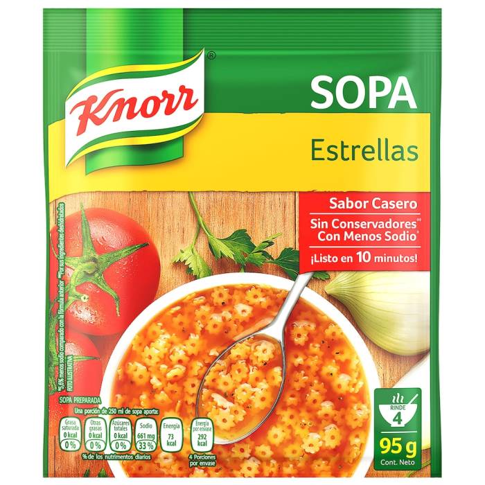 Deliciosa sopa de estrellas fácil de preparar que estará lista en 10 minutos, ideal para toda la familia gracias su gran sabor, además de estar libre de conservadores.