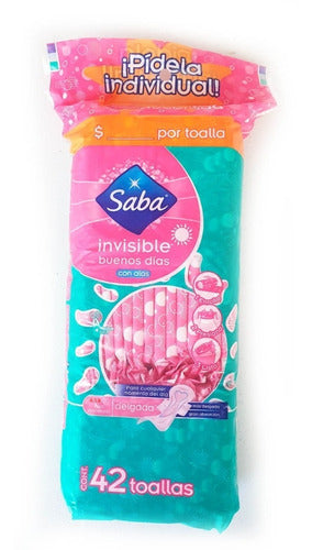 Media Caja toalla femenina Saba invisible C/A despachador en 3 paquetes de 42 piezas - SCA
