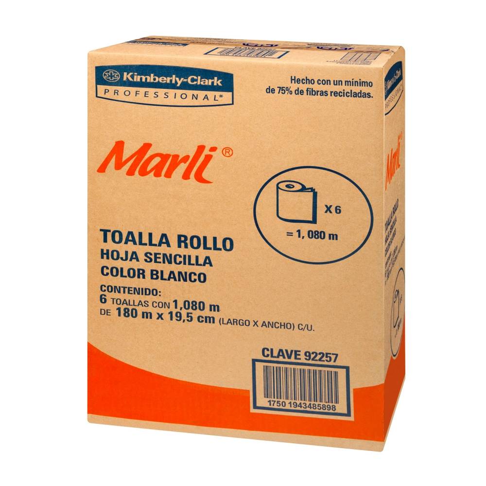Caja Toalla para Manos en Rollo 180 metros 6 rollos Kimberly Clark