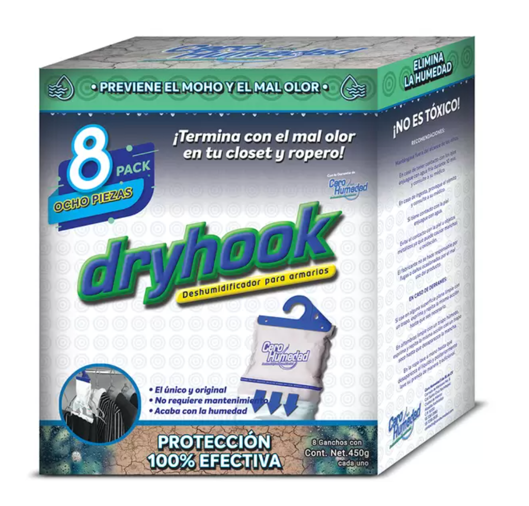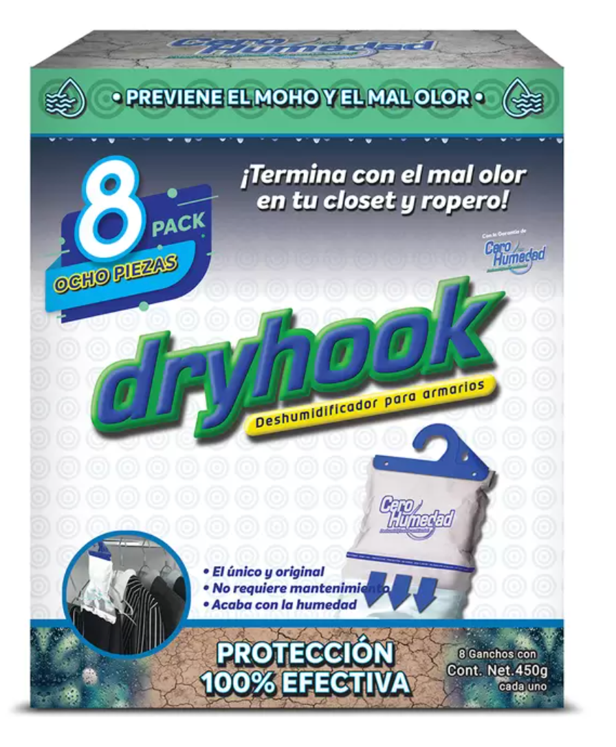 - Paquete de 8 Ganchos Dryhook de 450 grs c/u, especial para su closet.