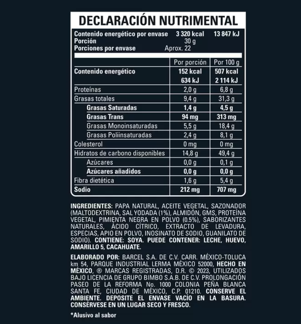 Chip's Toque Maestro Papas Fritas Sal y Pimienta 655 grs - .