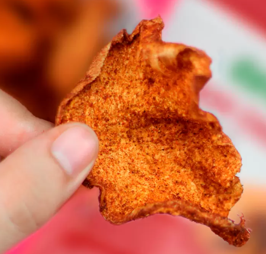 Chips deshidratadas y horneadas, que por su proceso conservan sus nutrientes y sabor. Son enchiladas a base de chile, limón y chipotle para convertir este snack en una opción crujiente, deliciosa y adictiva. La jícama es un tubérculo bajo en calorías, grasa y colesterol. Gran fuente de fibra y rico en vitaminas y minerales. Botana elaborada sin conservadores, sin azúcar añadida y sin aditivos. Un producto ligero y fresco y que realmente se va a convertir en tu botana favorita una vez que la pruebes, por fin la versión saludable de los chips convencionales. Recientemente mejoramos nuestro proceso y mejoramos textura y sabor, Pruébala para que al igual que nosotros, dejes atrás a las típicas botanas de siempre.