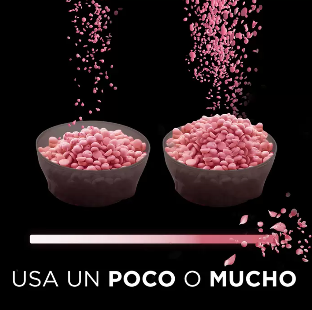 - Fácil de usar. Mide la cantidad que quieres en la tapa, vierte las perlas a la lavadora antes de agregar la ropa y lava normal