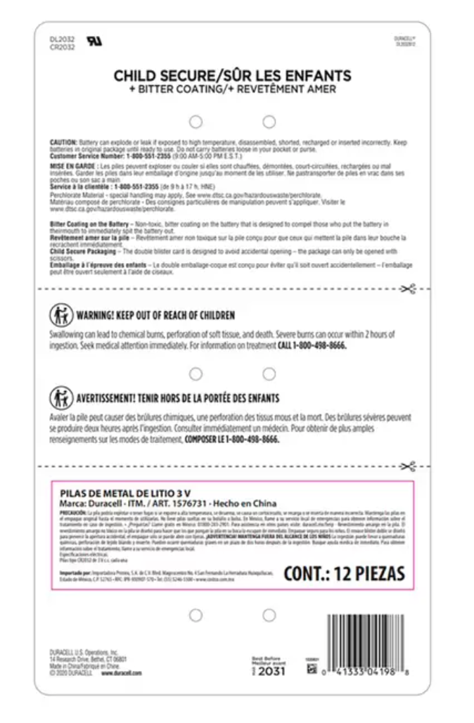 Duracell, Pilas de Litio 2032 3V de 12 piezas - KOZ