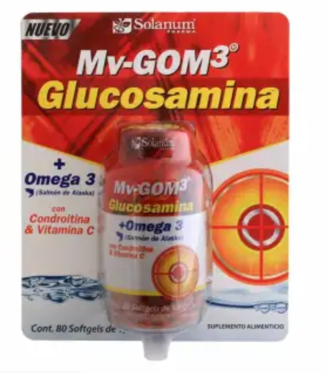 Los complementos alimenticios, son una opción viable para alternarlos con tu alimentación saludable, siempre con previa autorización de tu médico. Adquiere glucosamina Mv-GOM3, de Solanum Pharma, con omega 3, condroitina y vitamina C, en su presentación con 80 softgels.