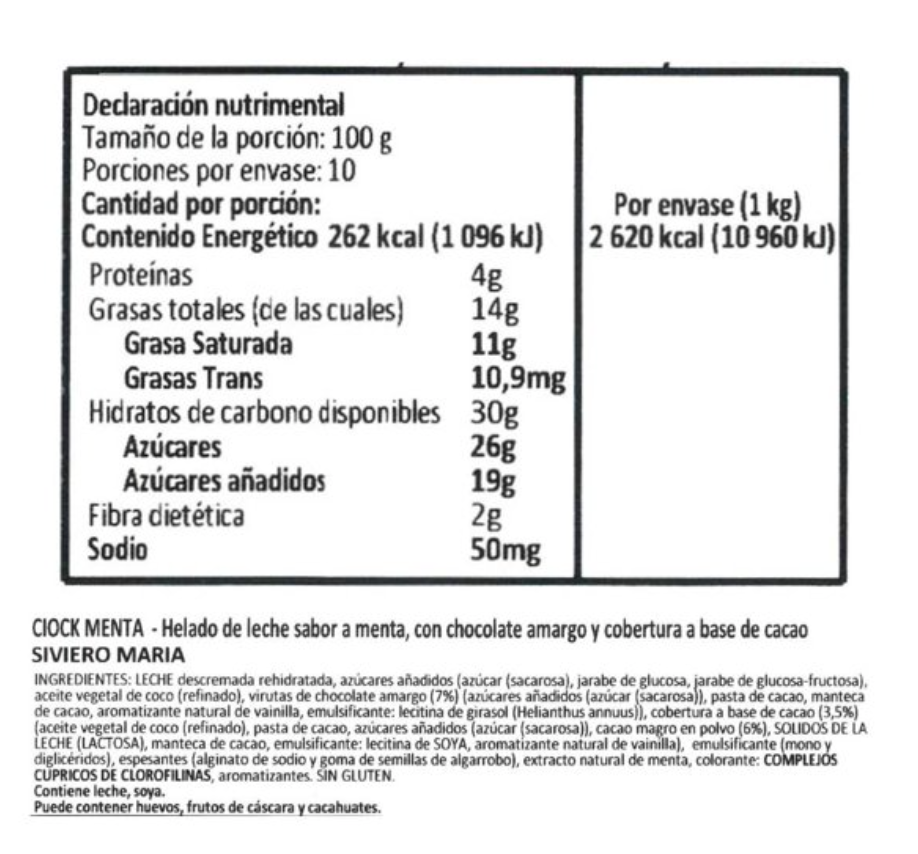 Siviero Maria, trae un delicioso helado de leche sabor a menta, con chocolate amargo y una cobertura a base de cacao.