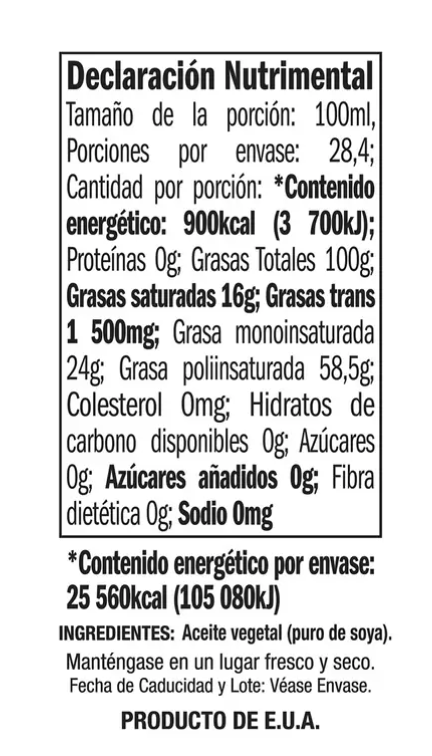 - Aceite Comestible puro de soya
