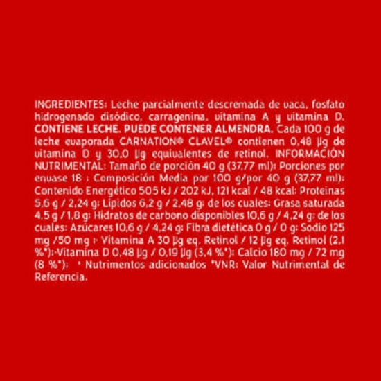 Leche Evaporada Carnation Clavel Nestlé 2 pzas de 679.88 ml c/u - ZK