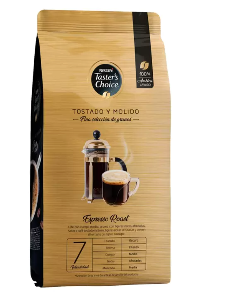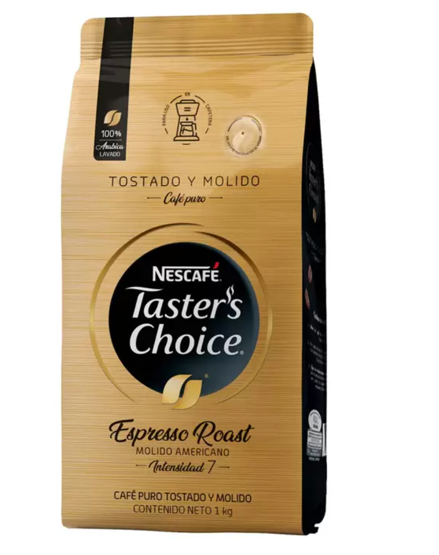 Taster's Choice Tostado y Molido en su nueva variedad Espresso Roast. Café puro tostado y molido 100% arábica lavado
