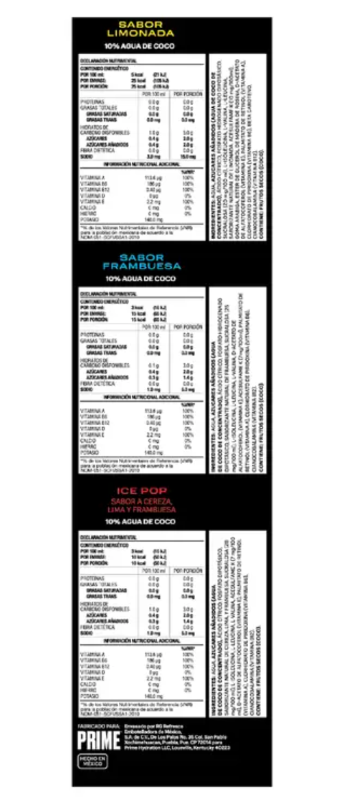 Prime Bebida Hidratante 18 piezas de 500 ml - .