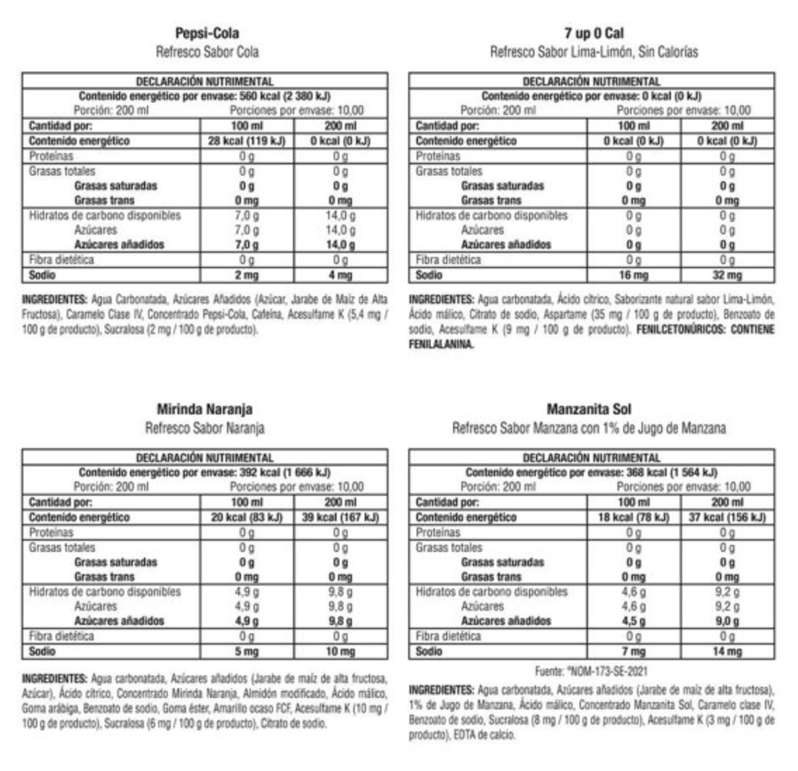 - Diferentes sabores de la familia Pepsi