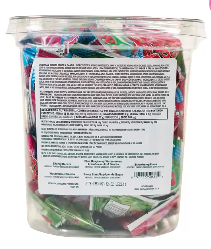 - Contiene una selección de 5 deliciosos sabores diferentes, incluyendo: (8) Sandía, (8) Fresa, (8) Frambuesa Azul y Sandía, (8) Bayas y (8) Cereza