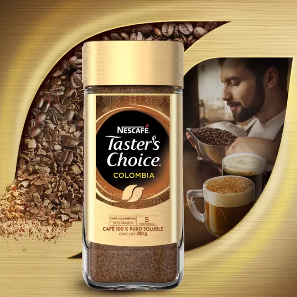 Nescafé Taster´s Choice Colombiano te permite disfrutar una experiencia sensorial única e inigualable, brindándote un balance perfecto en cada taza. El café Nescafé Taster's Choice está elaborado bajo los más altos estándares de calidad, usando una mezcla de granos únicos, manteniendo un sabor, aroma y cuerpo único gracias a su proceso de liofilización.