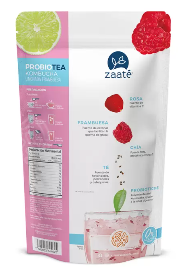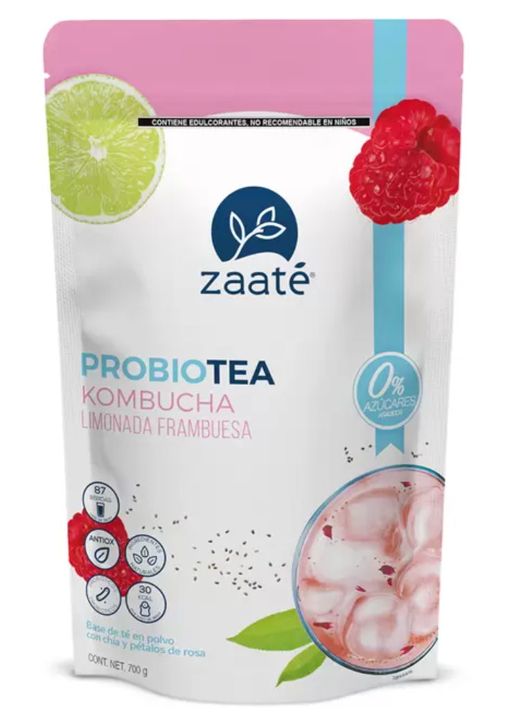 Zaaté Té Blanco Kombucha Limonada Frambuesa sin Azúcar 700 grs - KOZ